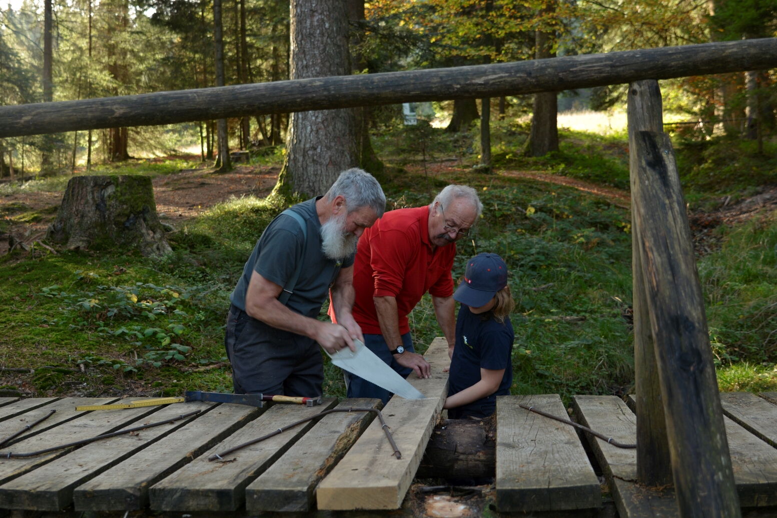 Den Walderlebnisraum für die neue Saison vorbereiten mit Mittagessen vom Feuer.