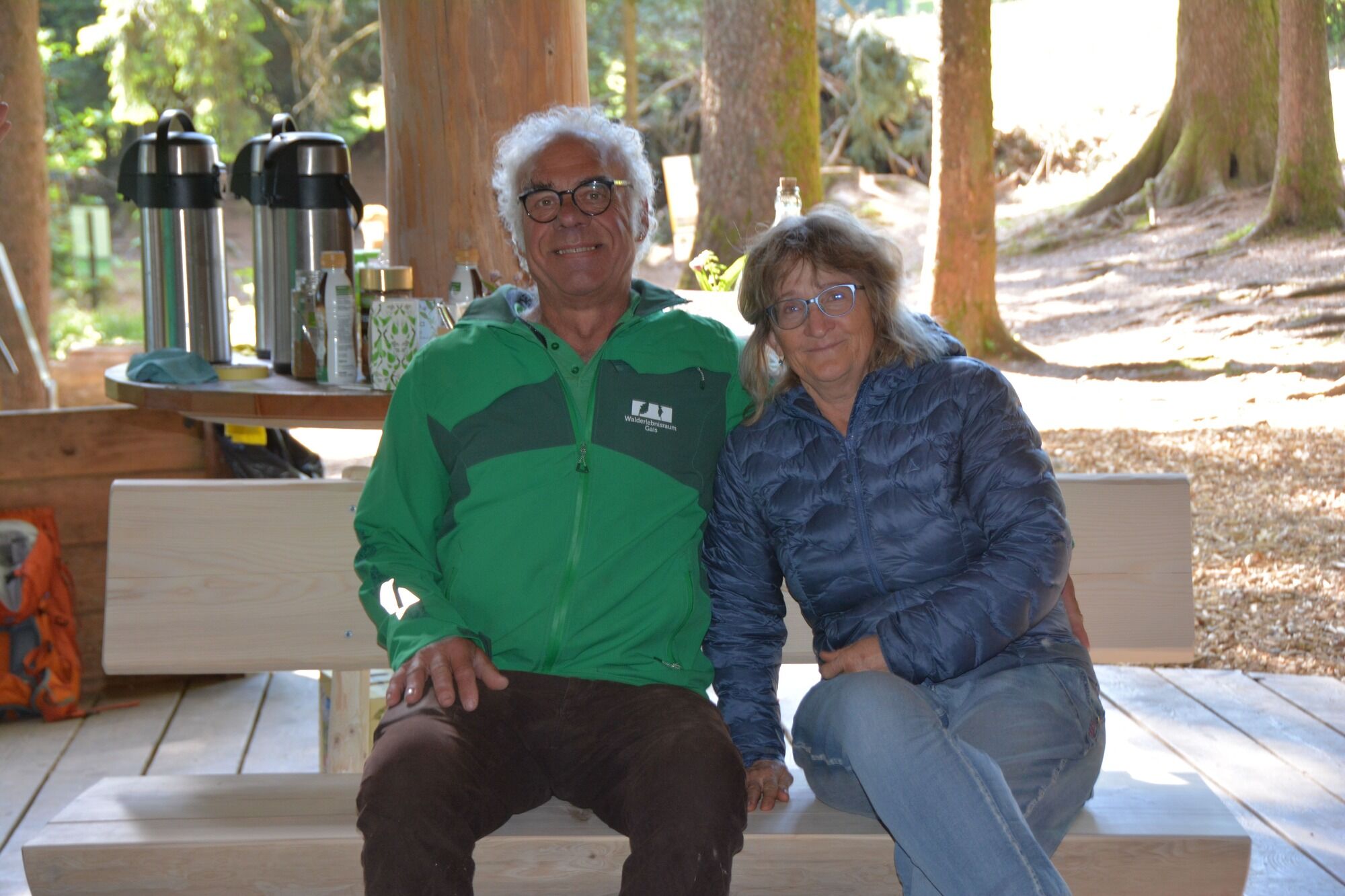 Seine Aufgaben wurden vorausschauend schon auf mehrere Schultern verteilt. Für wohlverdientes Ausspannen schenkte ihm und seiner Partnerin der Verein zusammen mit dem Gaiser Forstamt eine Baumstamm-Bank samt «Waldgruess» - auf dass er sich in jeder Pause an den WER erinnere. Neben ihm nahm Monika Stump Platz: Sie unterstützte Hansjürg Hörler und wirkte als Gastgeberin bei Sitzungen und vor allem in der Feuerküche bei der Waldhütte.
