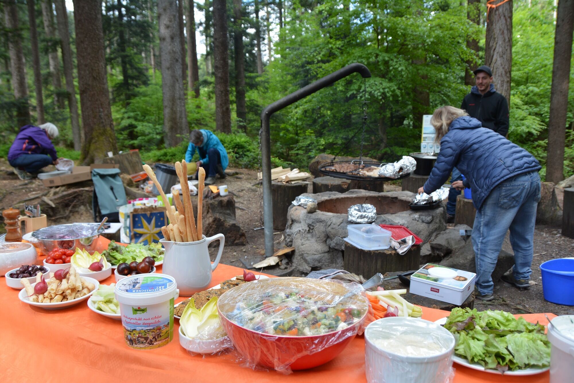 Nach der Versammlung wurde ein von einer Zivilschutzgruppe unter der Leitung von Marcel Küng neu erstellter Steg eingeweiht und auf Tragfähigkeit getestet. Der Ausserrhoder Oberförster Beat Graf erläuterte aktuelle Themen wie Klimawandel und Waldwirtschaft. Danach wartete das Buffet an der Feuerstelle. Die Augenweiden und Gaumenfreuden haben Monika Stump und Eva Rohner, unterstützt von Rebekka Untersander vorbereitet. Nach den bisig-kalten Stunden genossen die Mitglieder und Gäste den überaus reichen «Apéro» gern am Feuer.